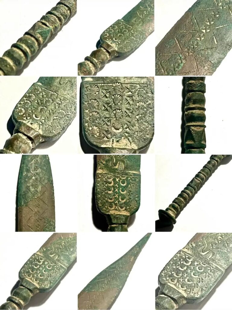 Los primeros análisis han revelado que la pieza mide 24’2 cm de largo y presenta intricados grabados en forma de línea y cruces en toda la hoja. La empuñadura hecha decorada con estrellas, lunas y medias lunas que según, Grezgorz Kurka , director del Museo de Historia de Kamien Land , tal vez sean símbolos que representen algún tipo de calendario.