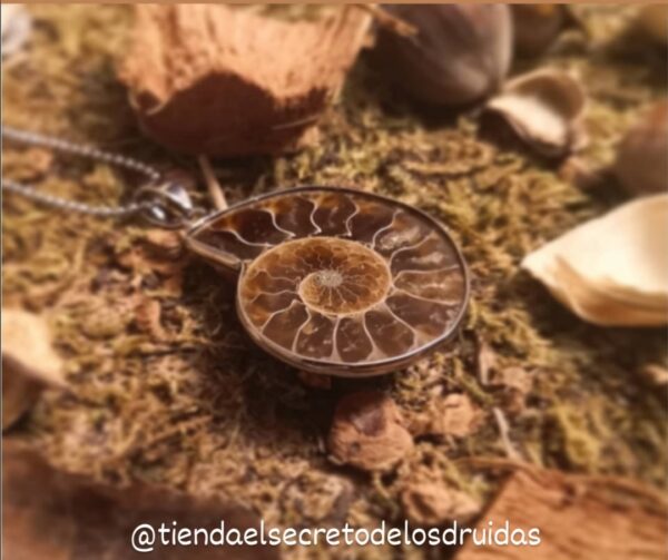 Colgante de amonita, que más que una piedra, es una concha fosilizada de un antiguo molusco extinto.