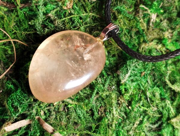 Colgante de cuarzo sanador en rodado cuya propiedad son: