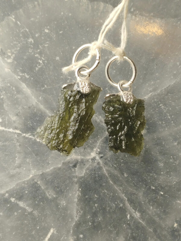 Colgante de plata de ley 925 de moldavita auténtica procedente de República Checa. Precio por unidad.