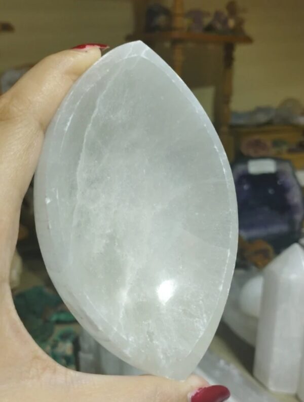 •Limpieza energética: Se considera que la selenita puede absorber y eliminar energías negativas tanto de personas como de espacios y otros cristales.