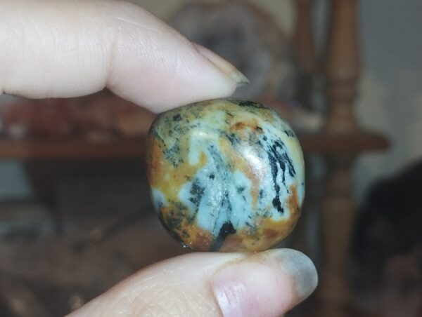El ópalo andino azul potencia la autoestima, es un protector en el viaje espiritual además de que permite la adivinación y ayuda a expresar las emociones positivas