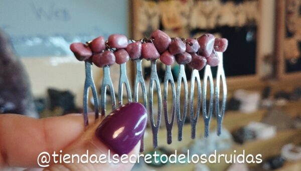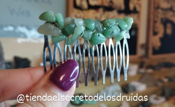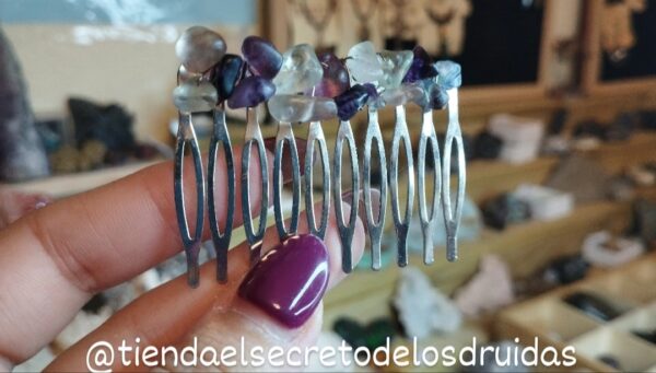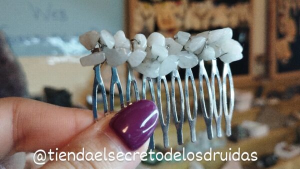 Peinecillos ideales para el pelo ya sea vestir de flamenca o para recoger una cola hechos por nosotros mismos. Hay de muchas clases: cornalina (naranja), obsidiana (negro) , ágata musgo o aventurina (verde) , cuarzo rosa o rodocrosita (rosa), amatista o fluorita (morado/lila) ,jaspe rojo (rojo) , piedra luna o cuarzo blanco (blanco).