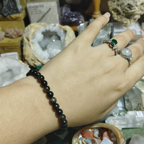 La obsidiana dorada, conocida por sus propiedades protectoras y energéticas, se asocia con la conexión con el pasado y el futuro, la auto-aceptación y la eliminación de energías negativas. Ayuda a equilibrar la energía, fomentar la introspección y promover el crecimiento personal.