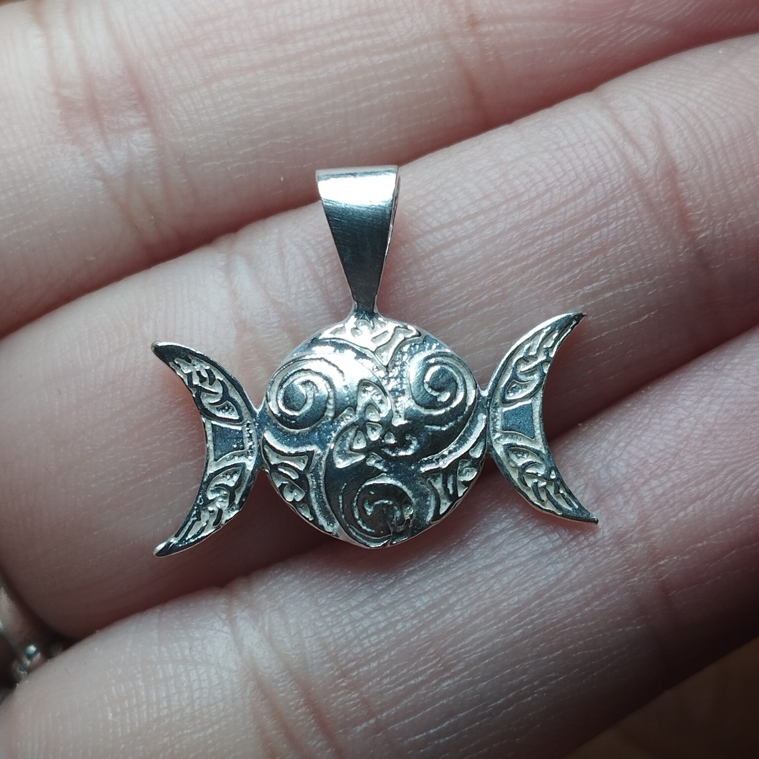 • Colgante triple diosa con trisquel labrado de plata de ley 925