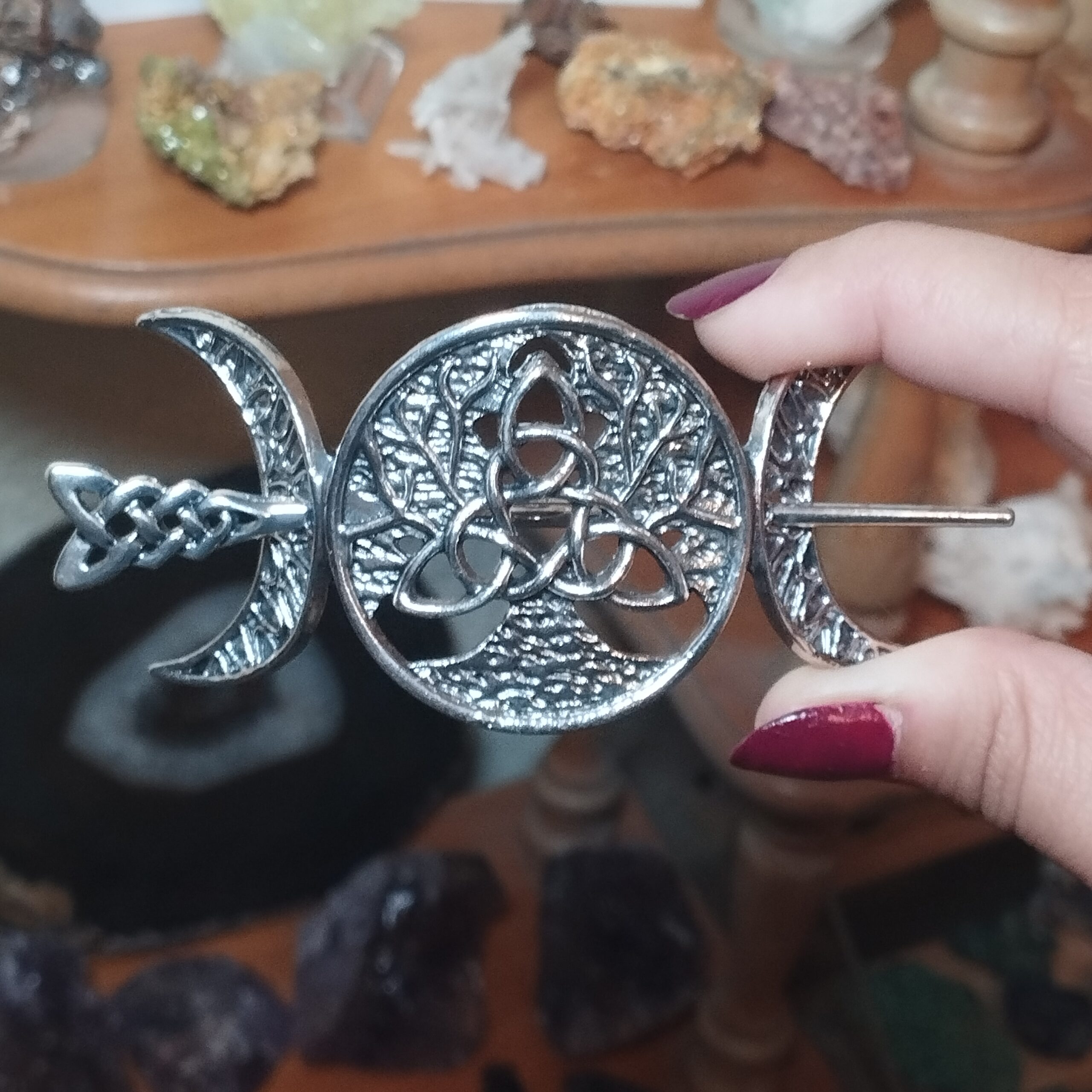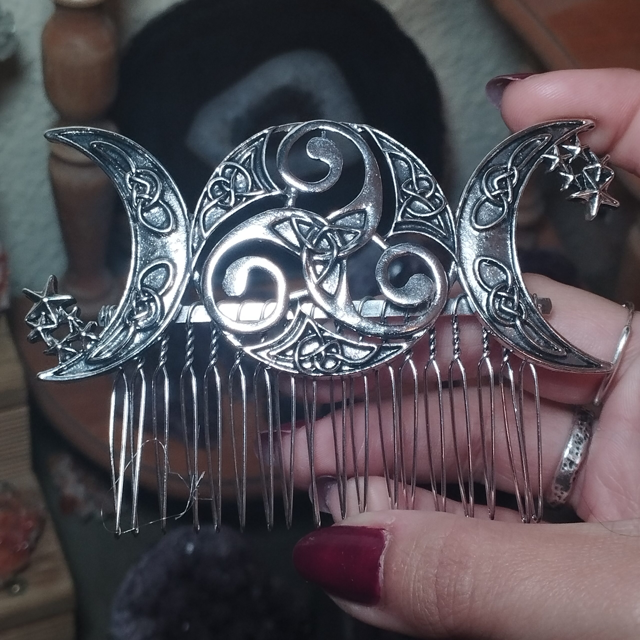 Peinecillo de acero inoxidable con simbología céltica (trisquel , triqueta , entrelazado céltico)