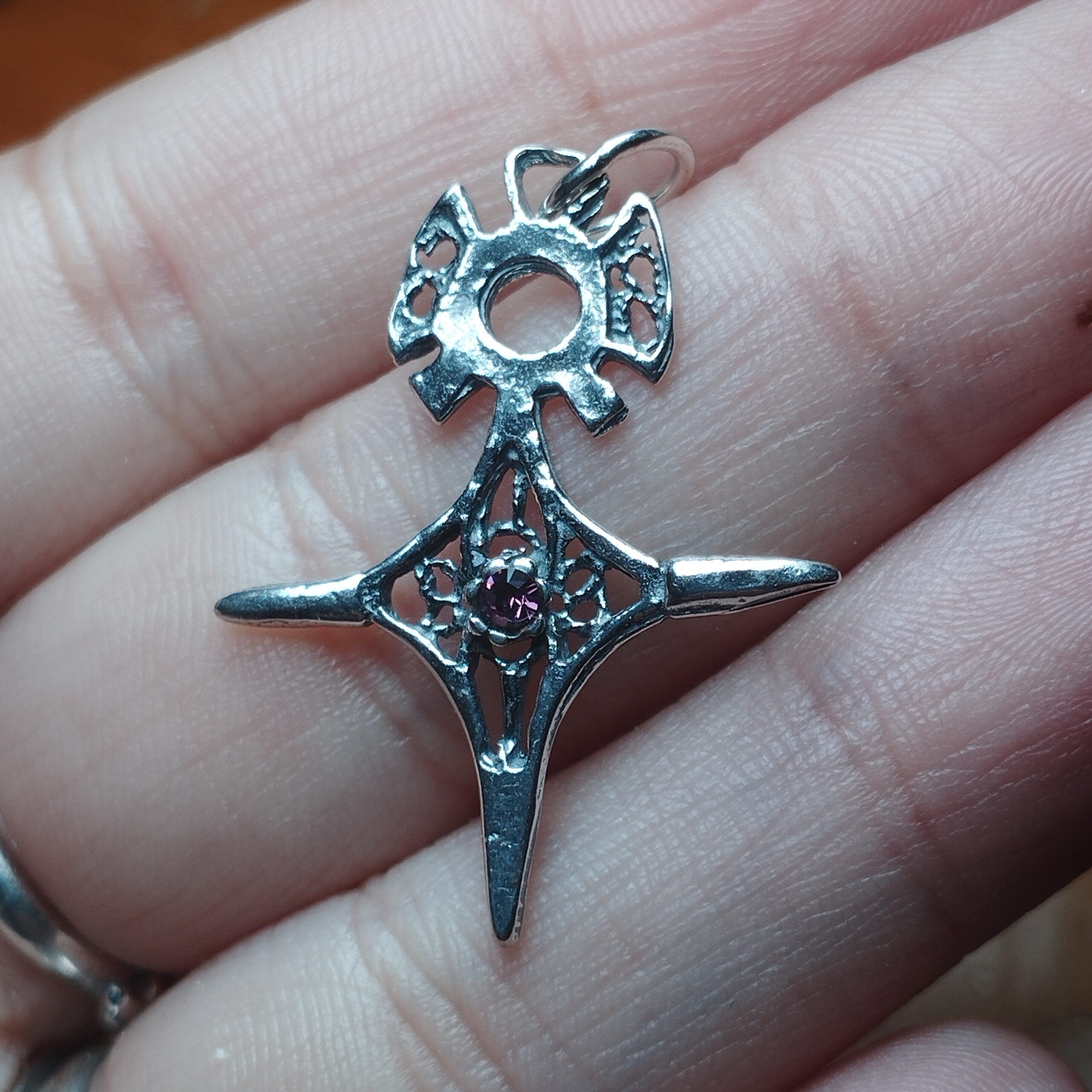 La cruz de Agadez es la más conocida de las 21 cruces tuareg de Níger, también conocidas como “cruces del sur”. Representan los cuatro puntos cardinales y los tuareg las usan como guía en el desierto del Sáhara, a modo de brújula para localizar la constelación de la estrella del sur en el cielo y calcular esa dirrección que les guía en sus caravanas 30,00 € IVA Incluido -